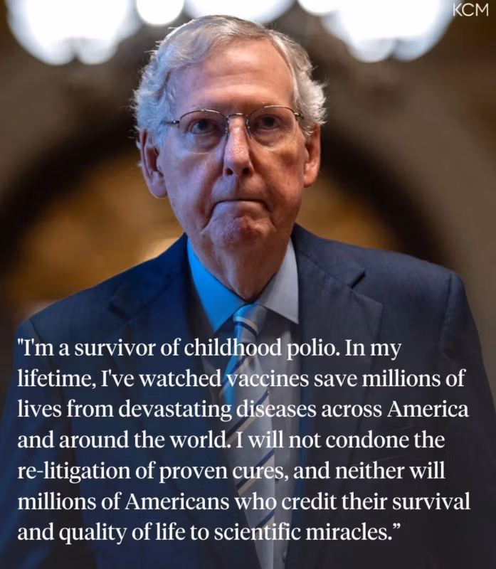 “Sou um sobrevivente da poliomielite infantil. Em minha vida, vi vacinas salvarem milhões de vidas de doenças devastadoras em toda a América e no mundo. Não vou tolerar o novo litígio de curas comprovadas, e nem milhões de americanos que creditam sua sobrevivência e qualidade de vida a milagres científicos.”